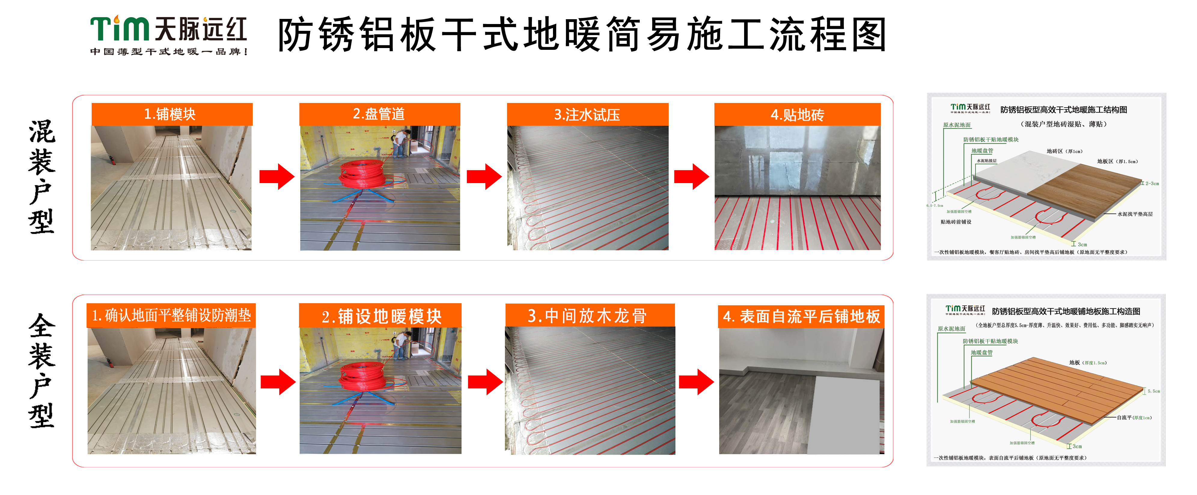五、防锈铝板干贴地暖模块简易施工三步骤