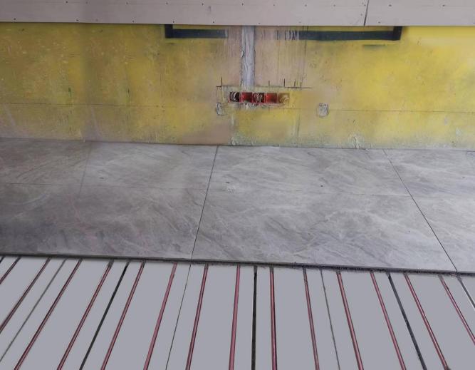 2、热惰性过大.地面结露风险高:湿式地暖保温板厚20mm,水泥回填层厚度标准为:DN16管回填层厚度40mm、DN20管回填层厚度50mm,加上地砖和水泥粘接层厚度45mm,地砖地板混装户型的湿式地暖总成厚度标准是10.5cm和11.5cm,一方面严重高于南方住宅进户门槛高度7.8cm,安装时需要业主抬高进户门;另一方面,水泥导热率过低,含面层的复合热阻大,水泥厚热惰性大,需用较低水温供冷,低温供冷容易产生地面结露,特别是进门厅和靠近阳台大玻璃的地面。